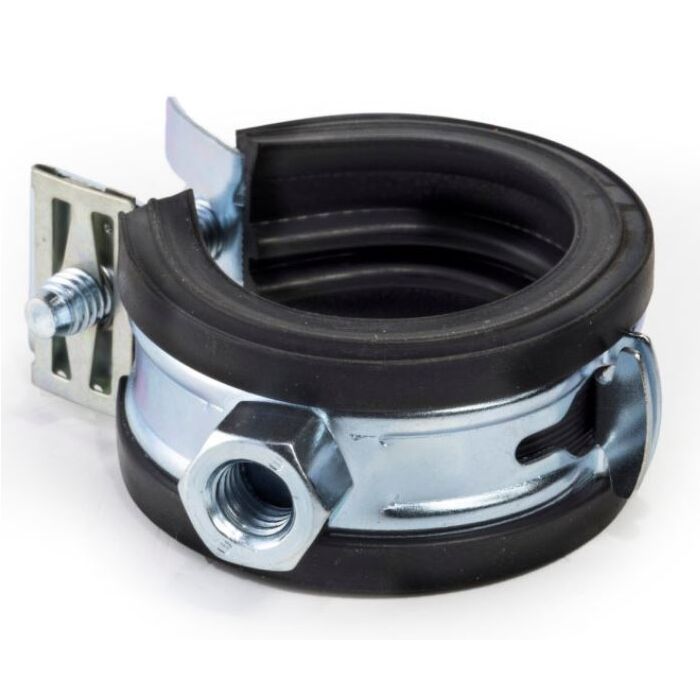 De BISMAT Flash pijpbeugel is elektrolytisch verzinkt en gebruikt u voor een geluiddempende bevestiging van een metalen buis. De diameter van de pijpbeugel is 40 - 43 mm en is voorzien van een M8 moer voor bevestiging aan muur of plafond.