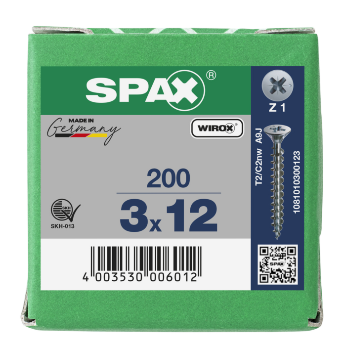 Spax spaanplaatschroeven PZ1 verzinkt 3 x 12 mm voldraad 200 stuks