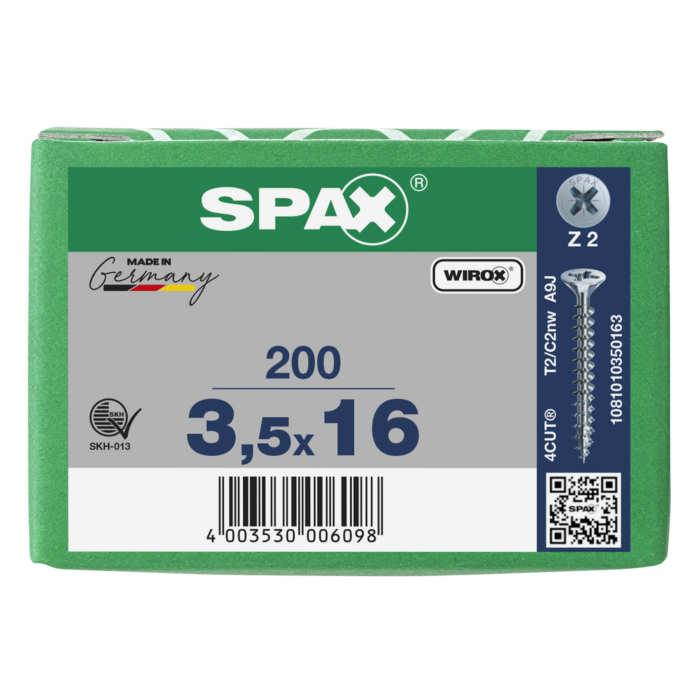 Spax spaanplaatschroeven PZ2 verzinkt 3.5 x 16 mm voldraad 200 stuks