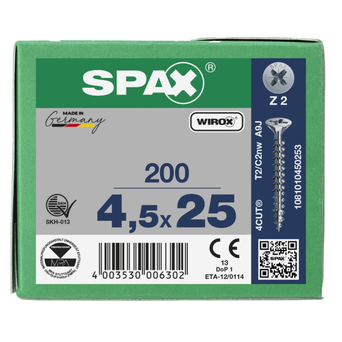 Spax spaanplaatschroeven PZ2 verzinkt 4.5 x 25 mm voldraad 200 stuks