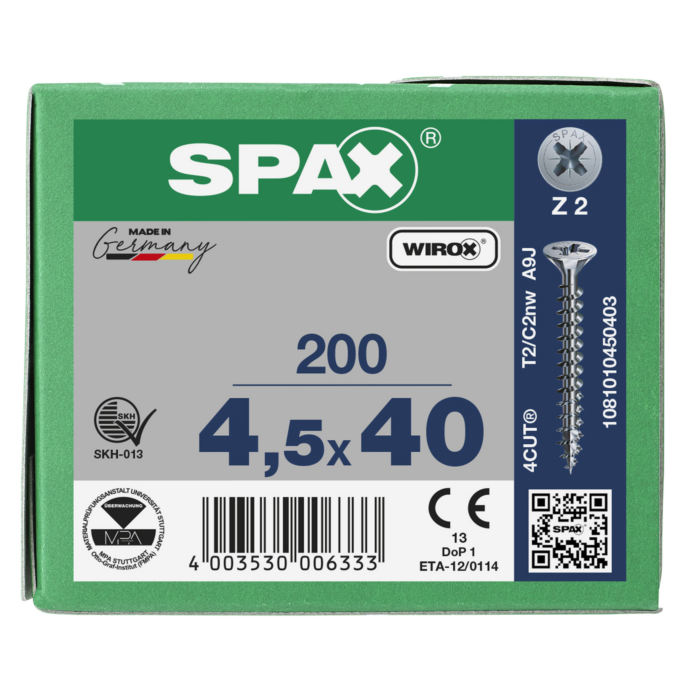 Spax spaanplaatschroeven PZ2 verzinkt 4.5 x 40 mm voldraad 200 stuks