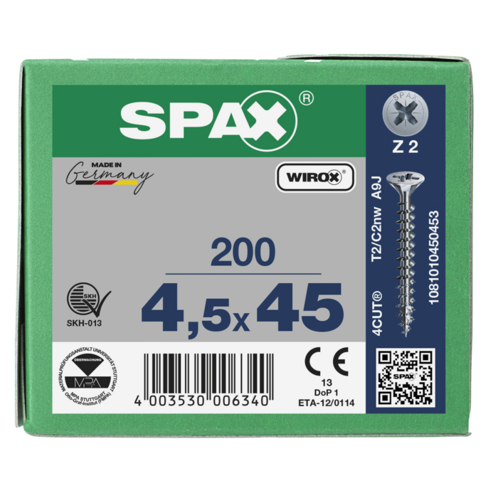 Spax spaanplaatschroeven PZ2 verzinkt 4.5 x 45 mm voldraad 200 stuks