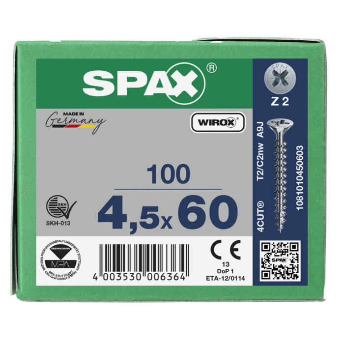 Spax spaanplaatschroeven PZ2 verzinkt 4.5 x 60 mm voldraad 100 stuks