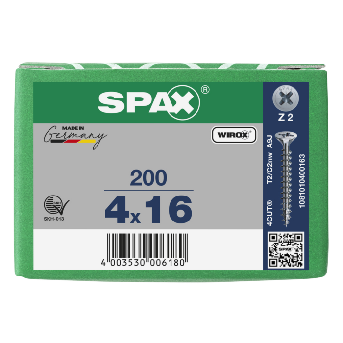 Spax spaanplaatschroeven PZ2 verzinkt 4 x 16 mm voldraad 200 stuks