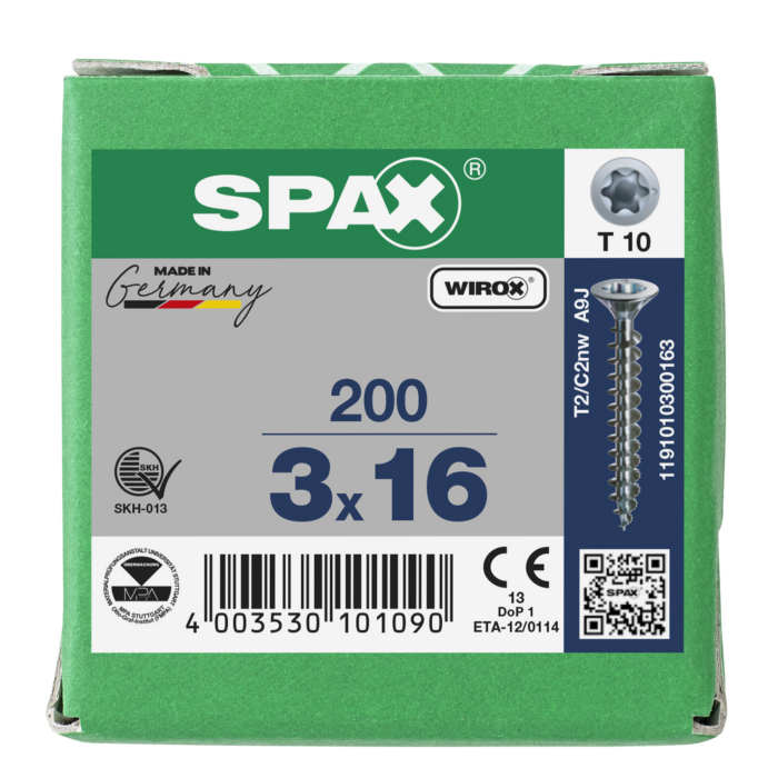 Spax spaanplaatschroeven T10 verzinkt 3 x 16 mm voldraad 200 stuks