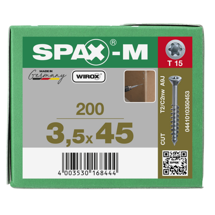 Spax spaanplaatschroeven T15 met boorpunt verzinkt 3.5 x 45 mm deeldraad 200 stuks