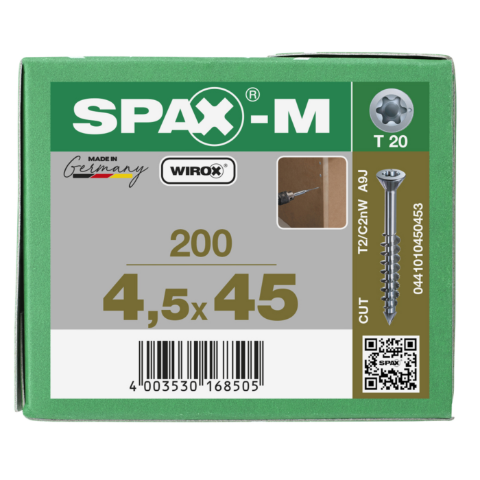 Spax spaanplaatschroeven T20 met boorpunt verzinkt 4.5 x 45 mm deeldraad 200 stuks