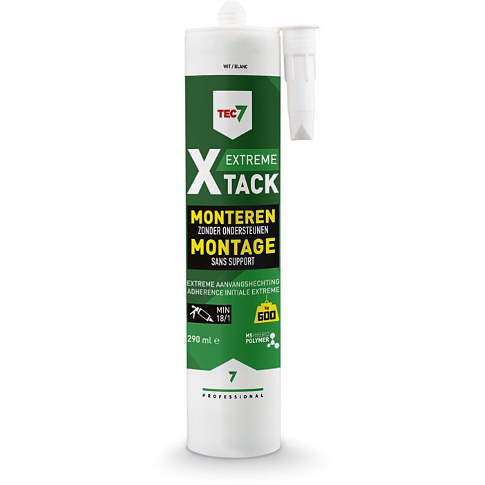Extreme X-Tack heeft een verwerkingstemperatuur van -10°C tot +40°C. De lijm moet worden aangebracht op een schone, stof- en vetvrije ondergrond, het liefst met een hand- of luchtdrukpistool en een telescopische zuiger. Voor het veilig reinigen van de ondergrond en het verwijderen van niet-uitgeharde Tec7-polymeren, wordt Tec7 Prepare & Finish geadviseerd. Bij intensieve vervuiling kunnen Tec7 Cleaner en/of Multiclean helpen.